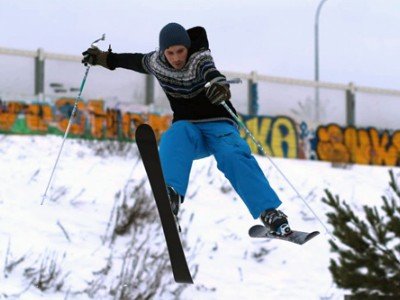 Под зажигательную музыку ребята катались со склона и делали зрелищные трюки.